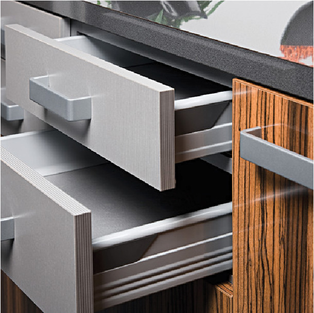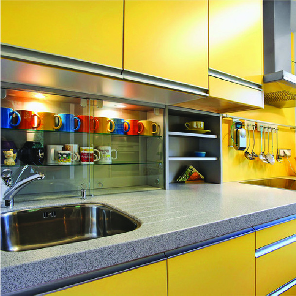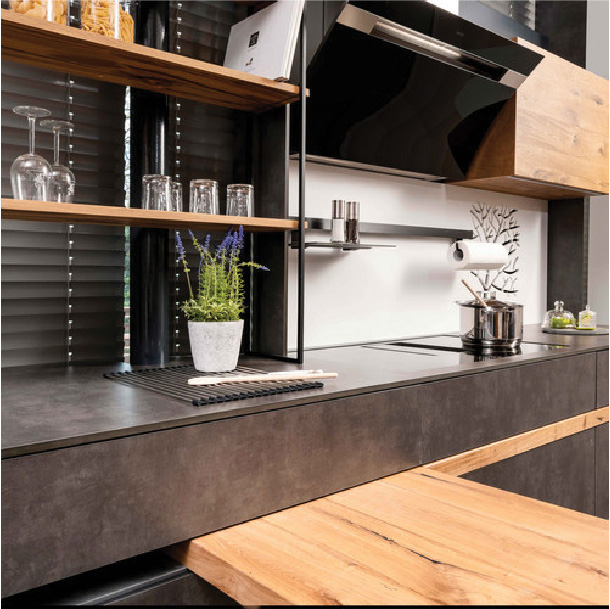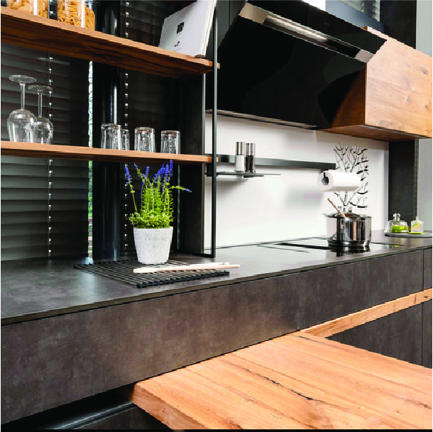 De la conception de cuisines et installations sanitaires à l’agencement de magasins les champs d’application des matériaux de la catégorie Interior sont divers et variés.